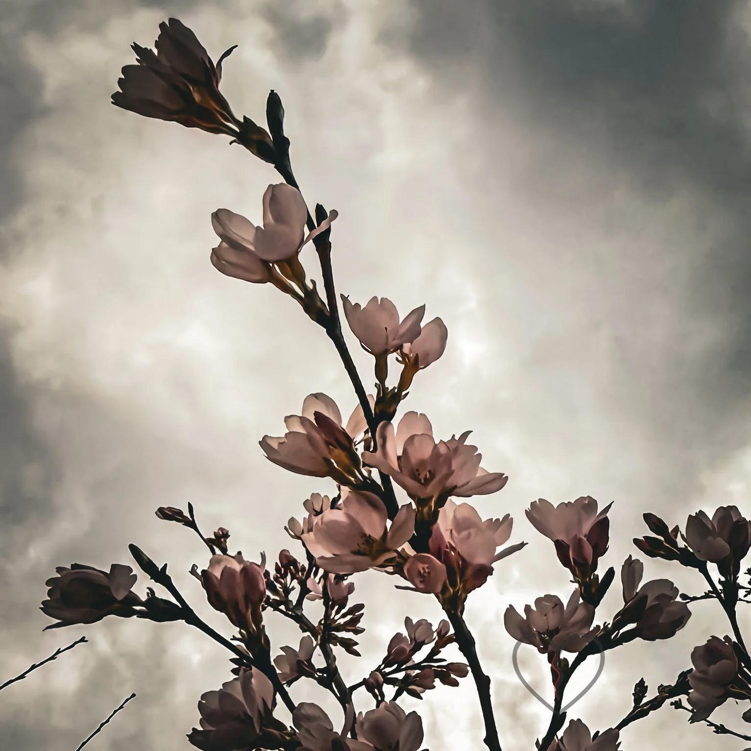 Cherry Blossoms Under a Stormy Sky